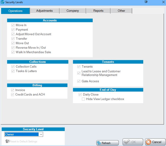 SiteLink Software has many layers of data protection, Corporate code, site code, user name and password are the basics. Change your password regularly. Ensure that personnel in your organisation have the correct security level and access to information in line with their authority.
